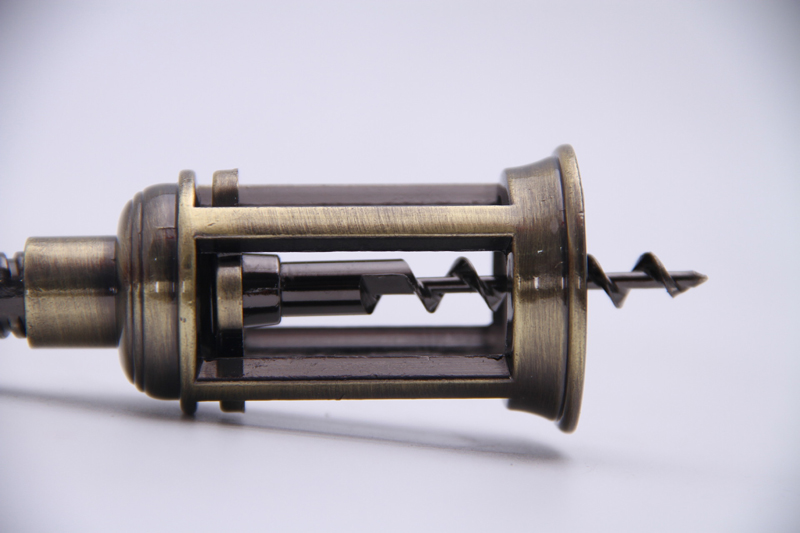 Het operationele ontwerp van de wijnopener onderscheidt zich door zijn minimalistische constructie. Hij is volledig gemaakt van een zinklegering, met uitzondering van het boormechanisme, dat is versterkt met koolstofstaal voor duurzaamheid. Deze opzettelijke materiaalkeuze zorgt voor zowel een strak, samenhangend uiterlijk als de nodige sterkte om herhaald gebruik te weerstaan.