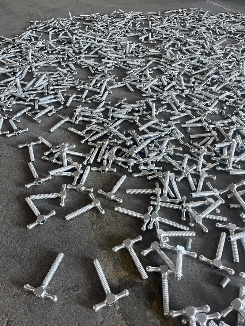 De uiteindelijke kleur wordt bereikt door middel van een gespecialiseerde galvaniseertechniek die een onderscheidende 'groen antiek koper'-afwerking produceert. Deze methode komt overeen met dezelfde galvaniseringsprocessen die worden gebruikt voor verchroomd keukengereedschap zoals schillers, knoflookpersen en notenkrakers, maar met een unieke tint. De opzettelijke kleurvariatie voegt visuele diversiteit toe en verrijkt de ontwerptaal van het product, wat een frisse maar nostalgische esthetiek biedt.