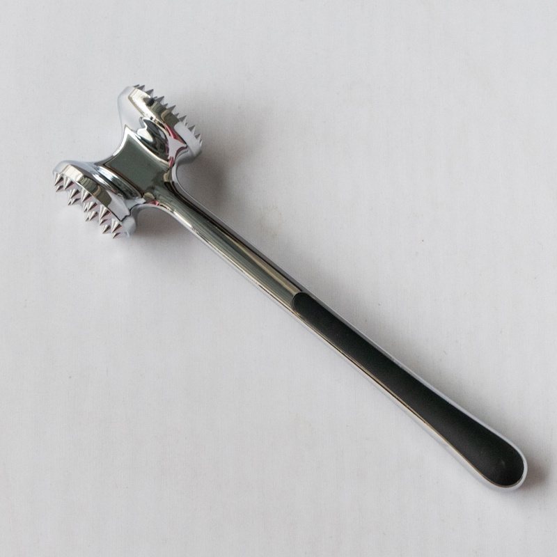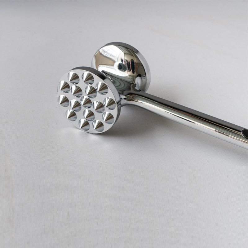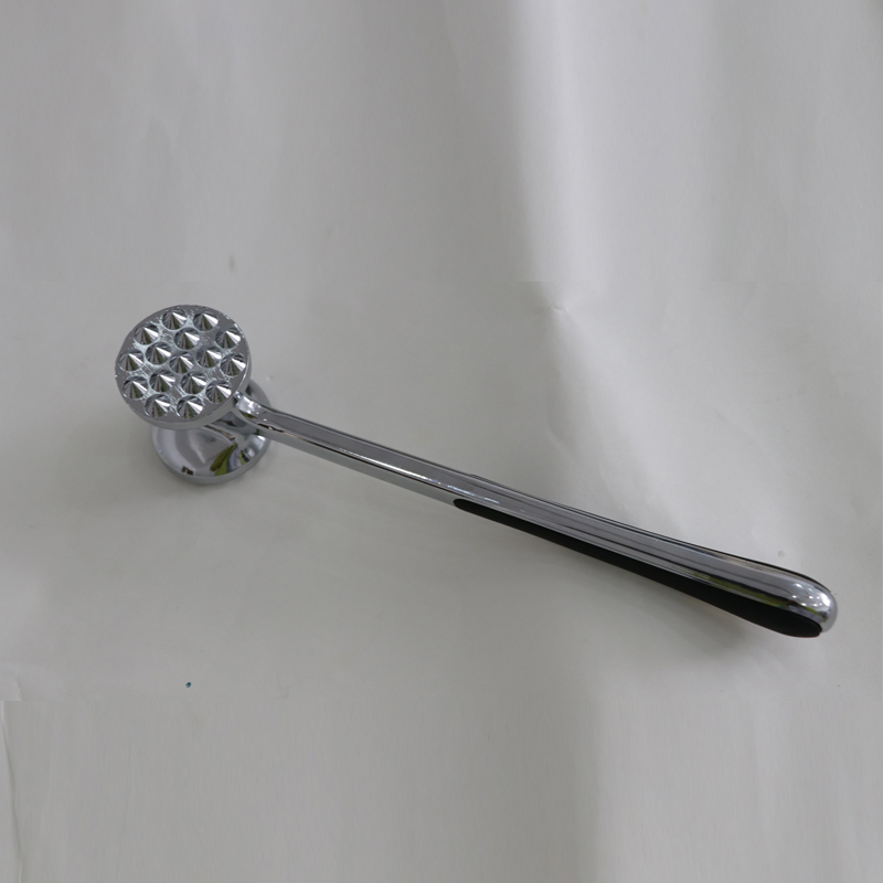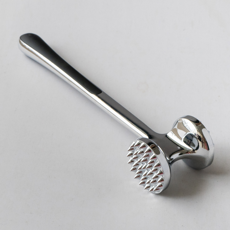 Dit is een vleesvermalser van zinklegering, geproduceerd door Jinhua Hanjia Commodity Co., Ltd, vervaardigd met behulp van een geïntegreerd spuitgietproces. Het metalen oppervlak wordt zorgvuldig met de hand gepolijst en het hele product ondergaat een milieuvriendelijk en veilig galvaniseerproces. De coating wordt vervolgens gepassiveerd om het zo hard te maken als staal. Met een lengte van 22 cm heeft het de perfecte maat voor een comfortabele grip in de hand van een volwassene. De gewichtsverdeling tussen de voor- en achterkant van de vleesvermalser is ontworpen volgens de gouden kleur. verhouding, waardoor gebruikers met minimale inspanning op het vlees kunnen slaan, uitsluitend afhankelijk van de zwaartekracht van de hamerkop. De vleesvermalserkop beschikt over twee verschillende oppervlakken voor verschillende soorten vlees. Plastic buffers aan beide zijden van het handvat zorgen voor comfort bij langdurig gebruik. Het totale gewicht van de malsmaker is 275 gram en het ontwerp zorgt voor uitstekende functionaliteit terwijl de kosten met meer dan 13% worden verlaagd in vergelijking met traditionele modellen. Hij is ook heel gemakkelijk schoon te maken, u kunt hem eenvoudigweg afspoelen met water of een vaatwasser gebruiken.
